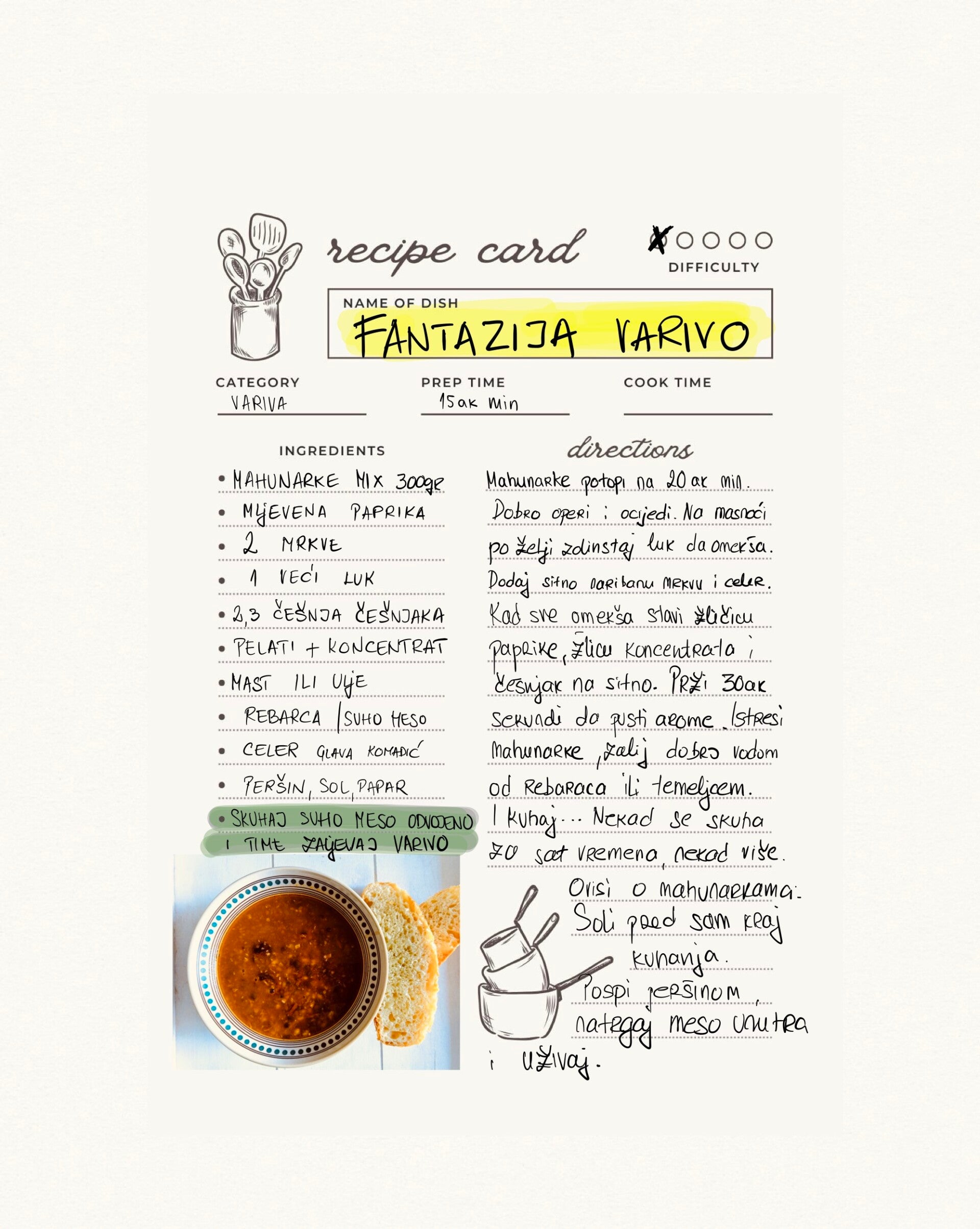 Nekad je dobro uzeti štogod na žlicu (a da nije heroin). Pogotovo kad jesen krene a variva postanu comfort food...još ako je lagan za napraviti i ako možeš imati varijantu i za one koji meso ne jedu....ma ručak za pet. Ima li ista bolje od ručka koji se doslovno sam kuha? Tvoje je da tu i tamo promiješas i poslije uživaš.